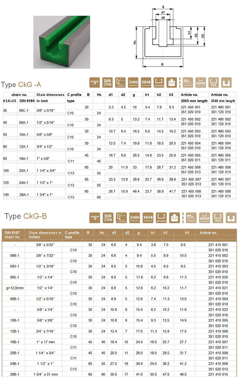 名稱:CKG型聚乙烯耐磨鏈條導軌